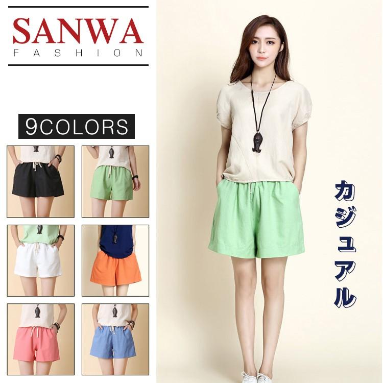 Amazon Huaszeer ショートパンツ 短パン レディース 綿麻 夏 ハーフパンツ 無地 純色 部屋着 ウエストゴム 普段履き ショート パンツ 通販